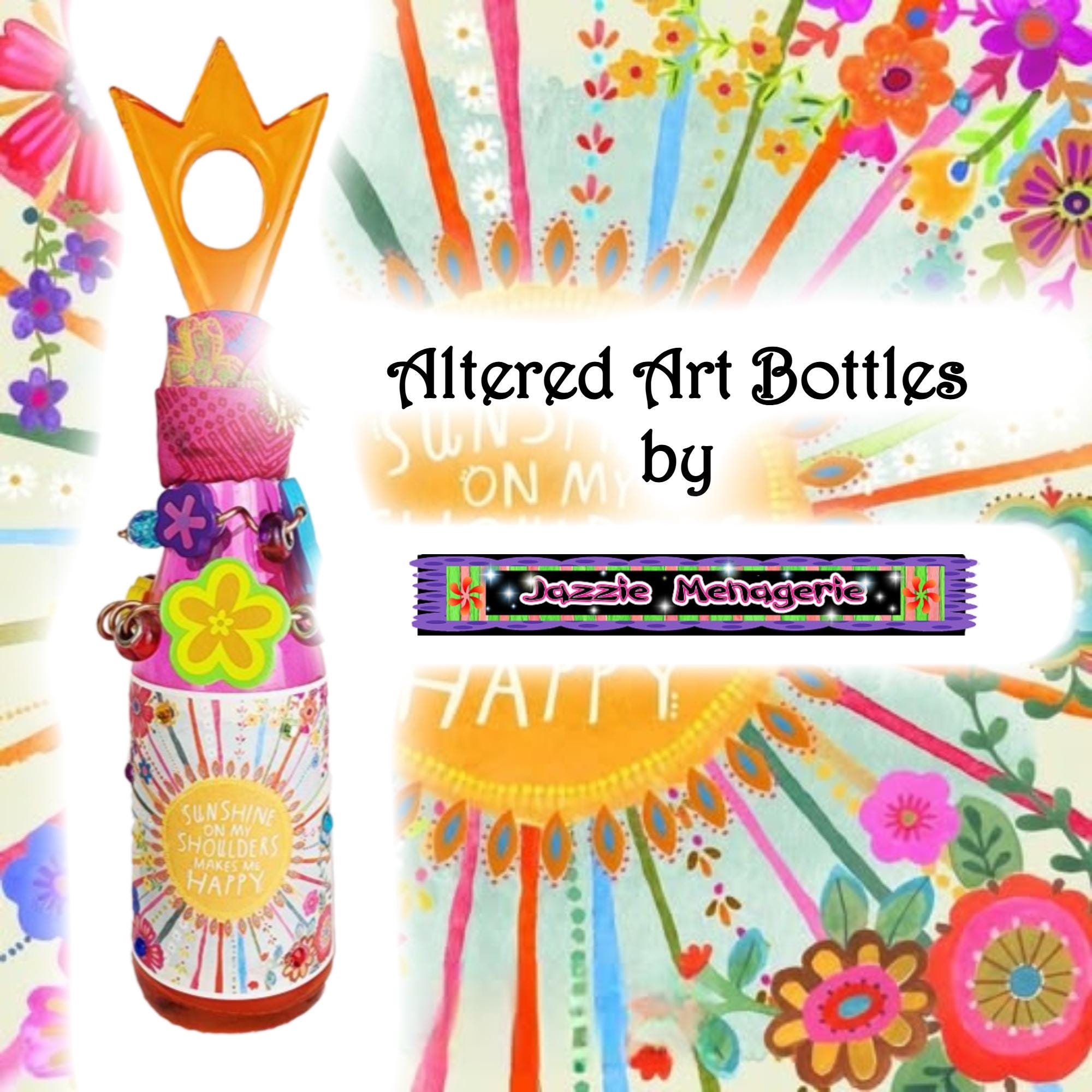 Vibrant Whimsical Sunshine and Happiness Altered Art Bottle