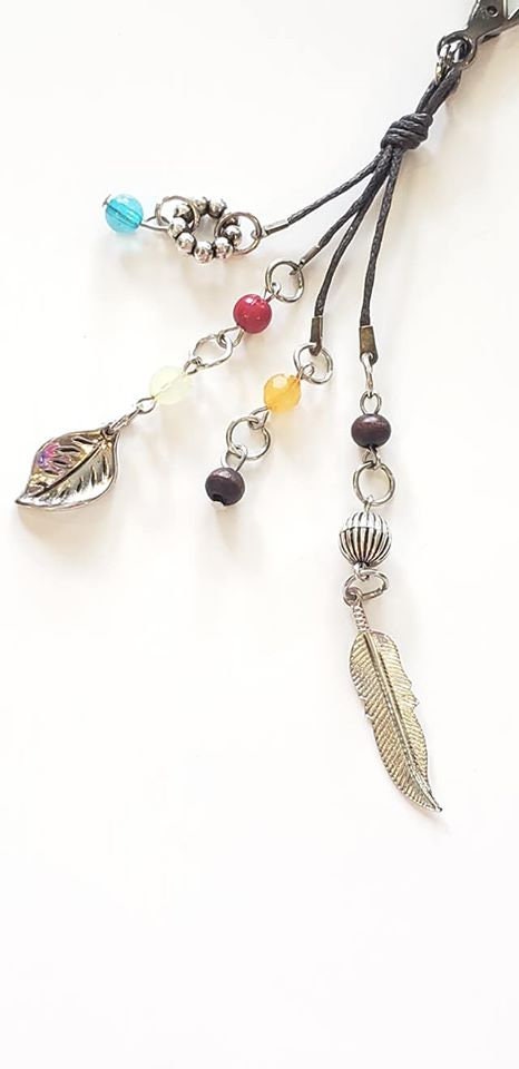 These loc beads with multiple strands of thin brown rope with small wooden beads and antique silver charms like the feather and leaf dingle dangling from every end. Each strand securely finished off. This charm also come with an alligator clip for an easy and fast application.